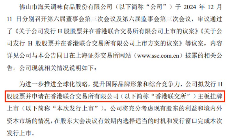 海天味業(yè)擬赴港上市 圖源:巨潮資訊