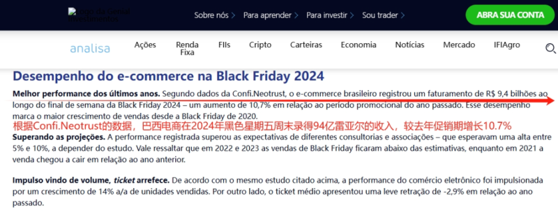 客觀來講,巴西再圣誕期間能夠取得這般成績也并非難以預料,畢竟在2024年的黑五,線上購物就已經表現出不錯的成績了。據Confi.Neotrust的數據顯示,2024年黑色星期五期間的總收入達到了93.8億雷亞爾,同比增10.7%。
