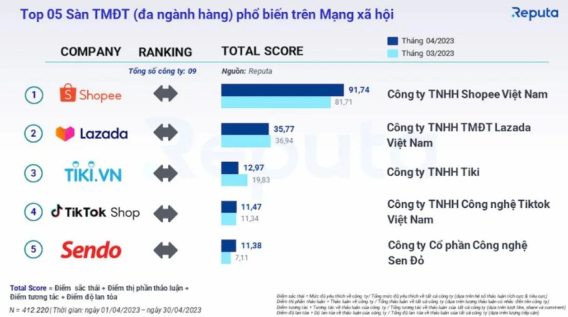 越南社交網(wǎng)絡(luò)上最受歡迎的電商平臺榜單?圖源:Reputa
