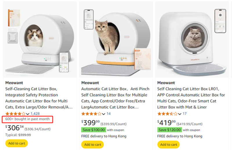 Meowant產(chǎn)品在亞馬遜熱銷(xiāo) 圖源:亞馬遜