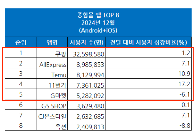 12月用戶訪問量下跌,韓國電商旺季降溫明顯