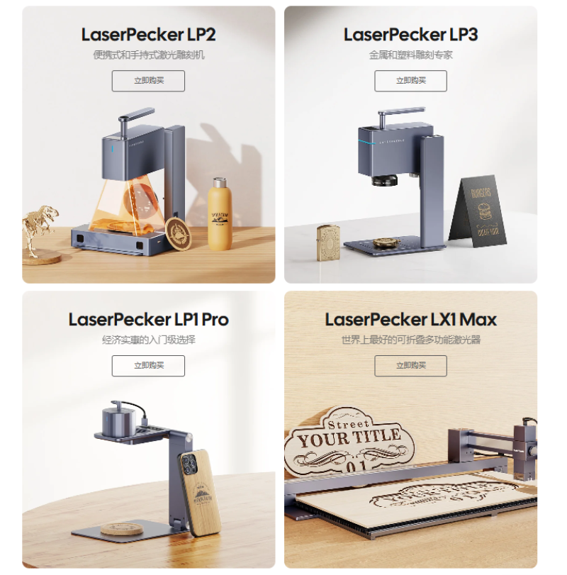 不過跟傳統的3D打印機一樣,市面上很多激光雕刻機體積大、重量重,無法隨身攜帶。LaserPecker正是捕捉到這一痛點,所研發的便攜式智能小型激光雕刻機外形時尚、便于攜帶,價格走平民路線,打出了差異化競爭優勢。