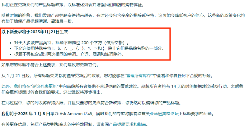 亞馬遜標題新政 圖源:sellercentral.amazon
