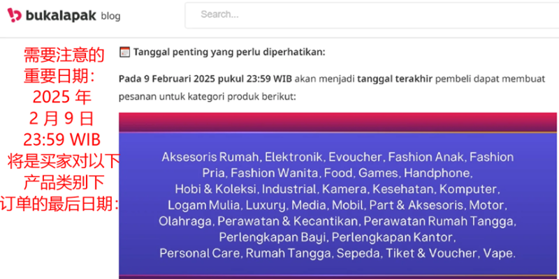Bukalapak宣布下單最后期限 圖源:Bukalapak