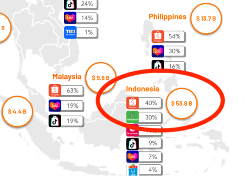 2023年印尼電商市場份額排名 圖源:Momentum Works
