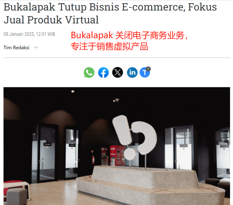 該巨頭表示,2025年2月9日23:59將是買家可以下單的最后日期。如果賣家在3月2日沒能處理剩余的訂單,那么訂單將會自動取消。與此同時,在3月14日前,Bukalapak電子錢包中的余額可以轉入用戶的銀行賬戶。并且在3月底之前,平臺還是會為用戶提供一些有關完成訂單、提取余額的指導。