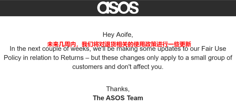 比如去年9月,在線時尚平臺Asos宣布,將對其英國市場的高退貨率客戶實施新的退貨政策。根據(jù)這項政策,這類客戶在退貨時需保留價值至少40英鎊的訂單,才能享受免運費服務(wù),否則將被收取3.95英鎊的退貨費用。