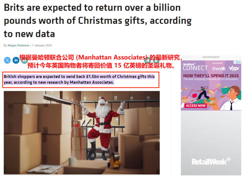 英國人圣誕后大批退貨 圖源:RetailWeek