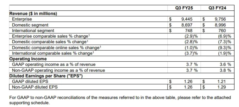 從2023年開始,百思買的銷售業績就不斷下滑,公司在公開交易中更是數次瀕臨破產。到了最新公布的2025財年第三季度,該公司的收入仍在下降,為94.45億美元,低于上年同期的97.56億美元,為此百思買還下調了全年業績預期。