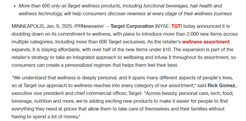 Target表示,將繼續在健康和福利領域加大投入,幫助消費者通過更多實惠的選擇,提升個人健康生活質量。