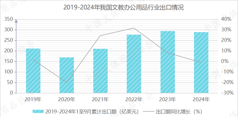 文教辦公用品出口數據 圖源:中國文體用品協會