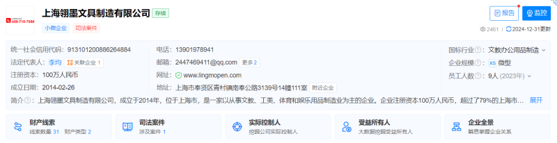 2019年,翎墨的鋼筆出口額穩定在幾百萬元;到2020年,翎墨出口實現爆發式增長,直接邁入千萬元行列,全年出口額達2000萬元;2023年,翎墨出口額繼續增長,突破6000萬元