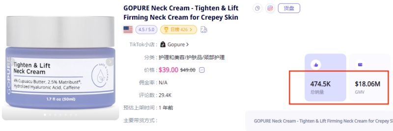 爆款頸霜 圖源:Echotik