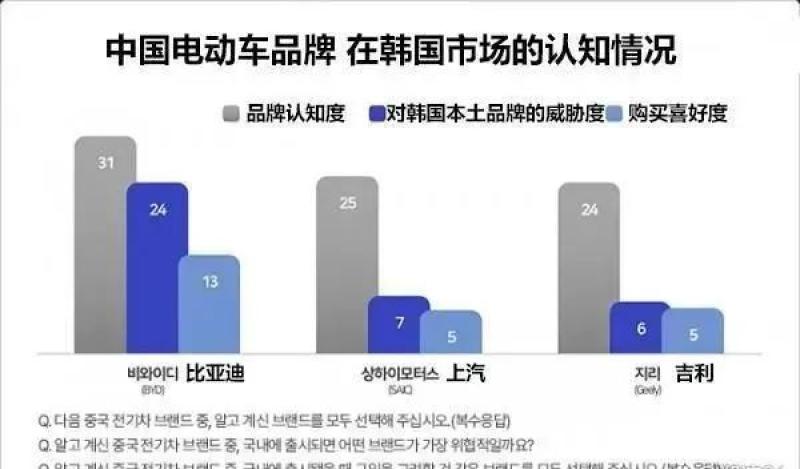 去年9月韓國一調查機構公布的消費者洞察,數據顯示,在比亞迪(BYD)、上汽汽車(SAIC)、吉利(Geely)、蔚來(NIO)、極氪、理想等多個汽車品牌中,韓國消費者最熟悉的就是比亞迪。