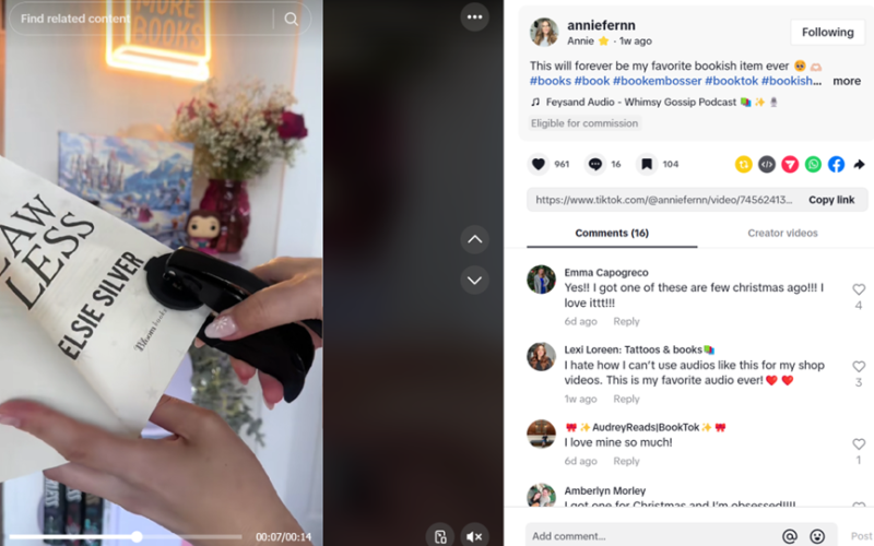 近日,品牌StamPrints旗下一款書本印花機在TikTok上走紅。據了解,起因是達人@anniefernn發布了一條關于該產品的短視頻,展示了書本印花機的用法和印出的精美圓形浮雕圖案。這款產品售價為75美元,總共有4種不同的配色,并且支持消費者定制圖案,吸引了不少消費者,不少人都在短視頻下留言表示想要購買。