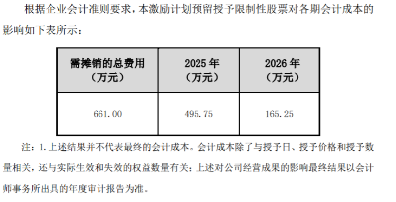 日前,深圳大賣杰美特就發布了一份《關于向2024年限制性股票激勵計劃激勵對象授予預留限制性股票的公告》,確定以2025年1月3日為預留授予日,以9.50元/股的授予價格向符合條件的4名激勵對象授予380103股限制性股票。按照授予日的收盤數據測算限制性股票的公允價值,預計授予需攤銷的總費用為661萬元。