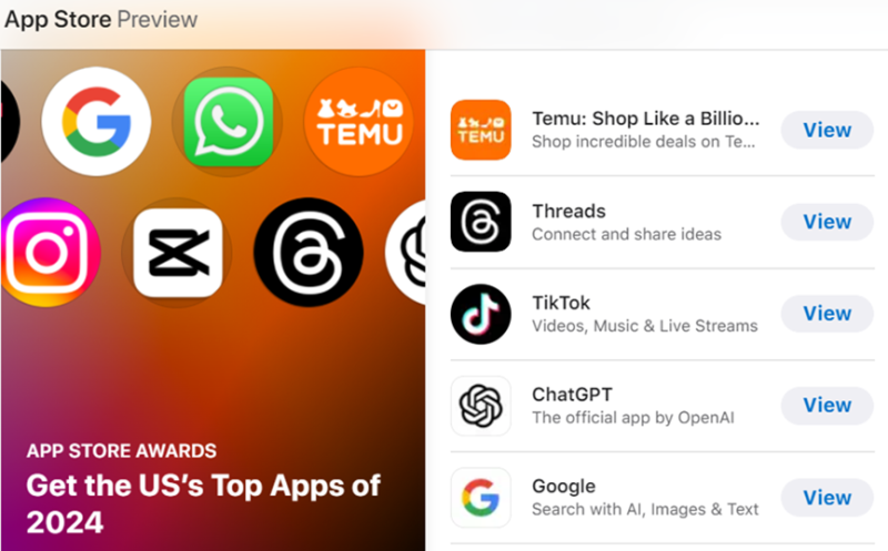 Temu登頂美國免費應用下載榜榜首 圖源:App Store