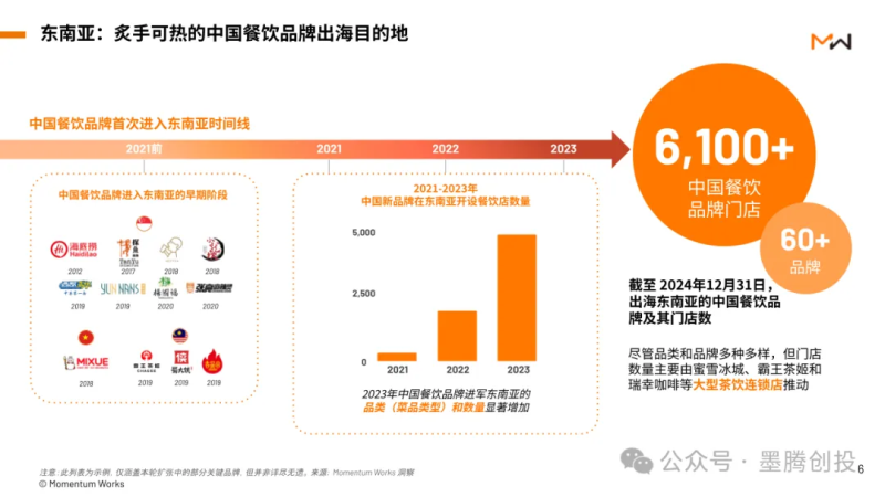 其中新加坡和馬來西亞是餐飲品牌集中度最高的國家,而在印尼和越南,餐飲品牌占據總門店數的三分之二,尤其是針對大眾市場的品牌?!皷|南亞對中國餐飲品牌很有吸引力,因為它們在地理和文化上與中國相似,在這些地方找到合作伙伴要容易得多”,Momentum Works首席執行官解釋道。