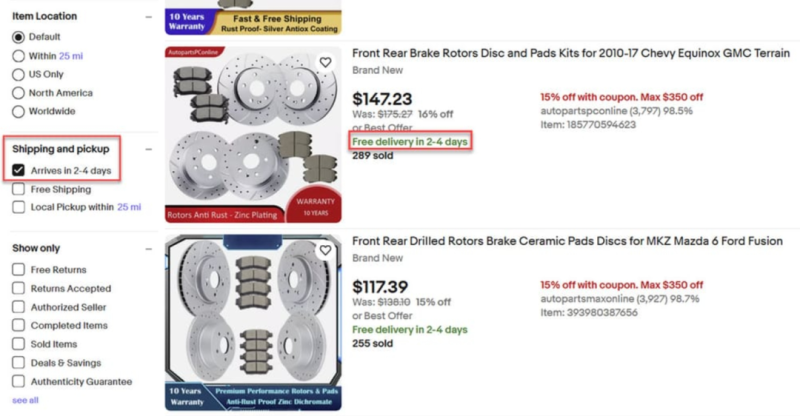 實際上,“搜索過濾器”并不是一個全新的概念,在很早之前就已經有類似的東西存在:在2018年eBay就開始嘗試“保證交貨”,2021年還在加拿大推出了“簡化運輸徽章”。