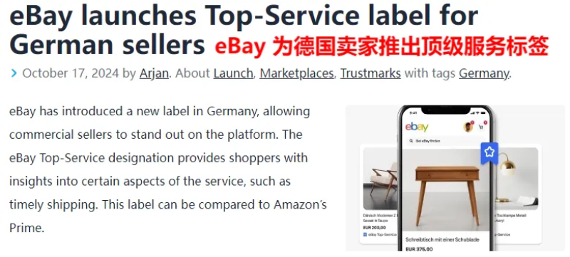 eBay推出頂級服務標簽?圖源:ecommercenews.eu