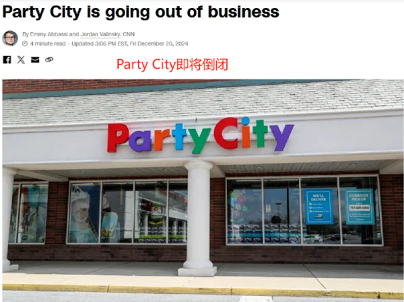 舉例來(lái)說(shuō),美著名派對(duì)用品企業(yè)Party City,已經(jīng)有長(zhǎng)達(dá)40年的運(yùn)營(yíng)經(jīng)驗(yàn),但近段時(shí)間也做出了同樣的決定,宣布將逐步關(guān)閉其零售和批發(fā)業(yè)務(wù),并將于2月28日前“永久關(guān)閉其所有門店”,目前正在進(jìn)行線下店鋪和線上網(wǎng)站清倉(cāng)甩賣的最后時(shí)刻。