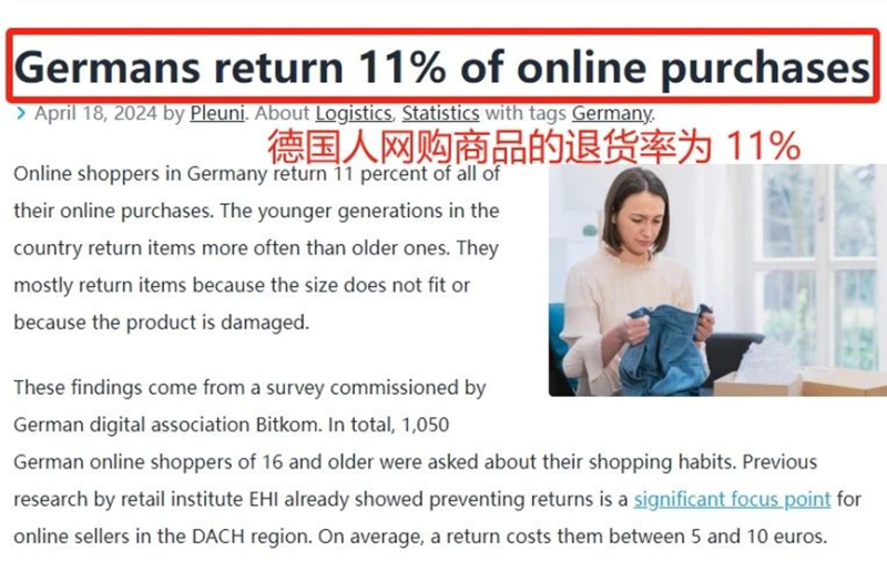 盡管德國電商十分火熱,但不得不指出的是,這一市場也面臨著一些挑戰(zhàn),比方說消費者對社媒平臺的印象較為固定,可能導(dǎo)致社交電商在該國的發(fā)展相對遲緩;再比方說退貨問題,德國數(shù)字協(xié)會Bitkom的數(shù)據(jù)顯示,德國消費者的網(wǎng)購?fù)素浡蕿?1%,這讓大批零售商感到焦慮。