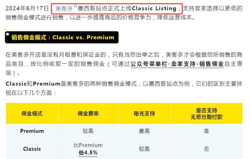 比如在去年6月,美客多在墨西哥站上線Classic Listing,賣家在墨西哥站銷售商品時,可享受到全品類傭金下調(diào)4.5%的福利;隨后在12月,美客多調(diào)整海外倉賣家入駐門檻,新賣家流水要求下調(diào)至5000美金。