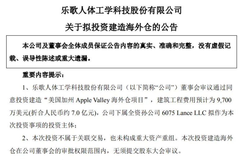 樂(lè)歌斥資7億元新建海外倉(cāng) 圖源:樂(lè)歌股份