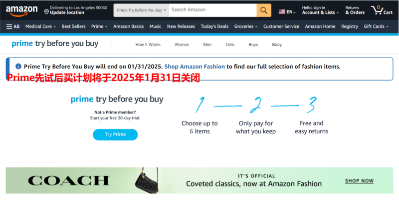 最近,據(jù)媒體消息,亞馬遜將逐步關(guān)閉Prime會員的服裝先試后買計劃,具體停用時間為2025年1月31日。