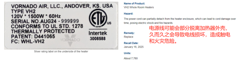 近日,美國消費品安全委員會(CPSC)發布了一則公告,宣布緊急召回品牌Vornado Air旗下一款全室加熱器,理由是存在安全風險。