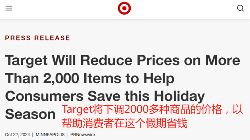 再回看2024年旺季這一關鍵節點,彼時Target正面臨三季度銷售疲軟、利潤下滑的困境,再加上亞馬遜、沃爾瑪等平臺的激烈奪食,業績壓力巨大,必須得搞點花樣刺激消費。