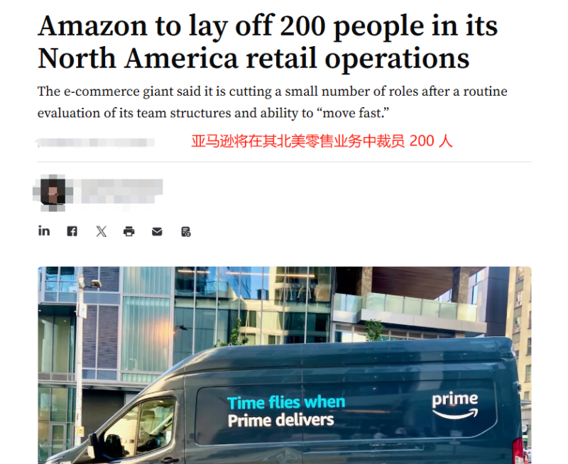 近日,有消息稱亞馬遜將在其北美商店部門裁員約200人,此次裁員主要集中在核心零售部門,該部門涵蓋業(yè)務(wù)廣泛,包括時尚健身、Prime和自有品牌,預(yù)計從事賬戶管理、商品銷售和數(shù)據(jù)工程相關(guān)職務(wù)的員工將受到影響。