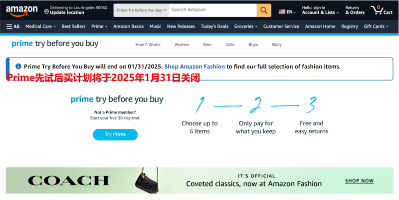 亞馬遜結(jié)束先試后買計劃 圖源:Amazon