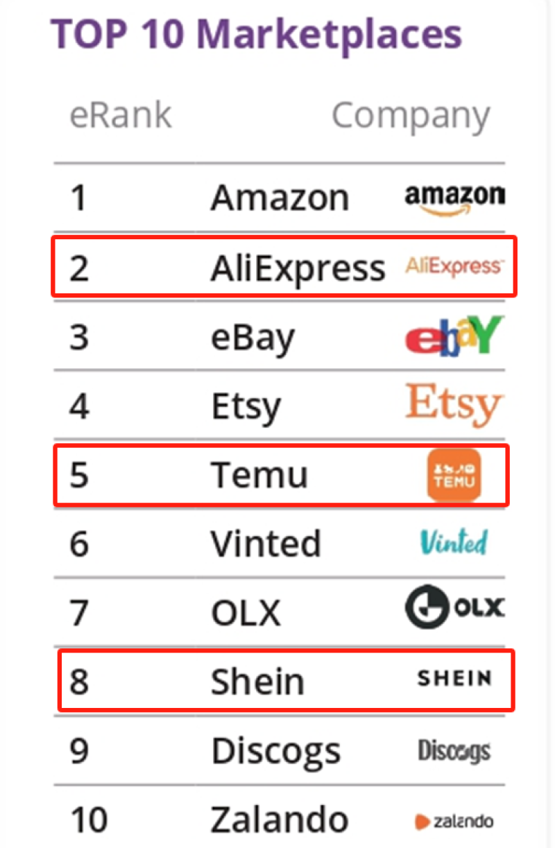 值得一提的是,中國跨境電商平臺不僅僅深受美國消費者的歡迎,在歐洲市場,它們也是備受追捧的存在。不久前,研究機構CBCommerce.eu公布了一份《歐洲100強跨境市場》報告,其中披露了當前歐洲十大電商排名,AliExpress、Temu、SHEIN均在榜單前十。