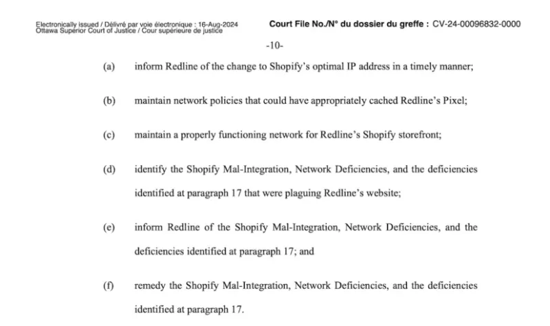 其二是DNS和IP地址差異,Shopify域名系統設置中的差異影響了Redline網站的可訪問性;其三是違反合同業務,這也是本次訴訟的核心。Redline指出Shopify未能履行其合同業務,比如未能通知商家重要更新、解決其管理的DNS設置和網絡配置之間的不一致問題等。