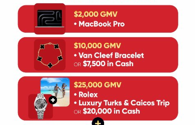 就像保健品大賣Goli Nutrition,此前就推出了年終激勵計劃“Grand Finale Holiday Sprint”,在2024年12月16日至31日期間,參與獎勵計劃的達人GMV達到2000美金就可獲得一臺MacBook pro,GMV突破1萬美金就可獲得價值7500美金的梵克雅寶項鏈,如果GMV達到2.5萬美金可直接帶走價值2萬美金的勞力士手表。