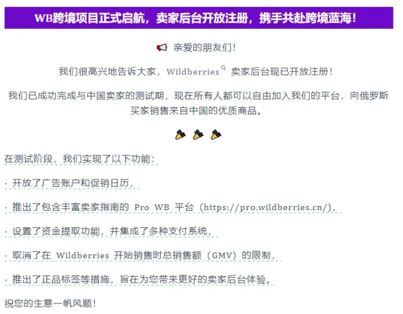 Wildberries向中國賣家全面開放 圖源:WILDBERRIES電商平臺