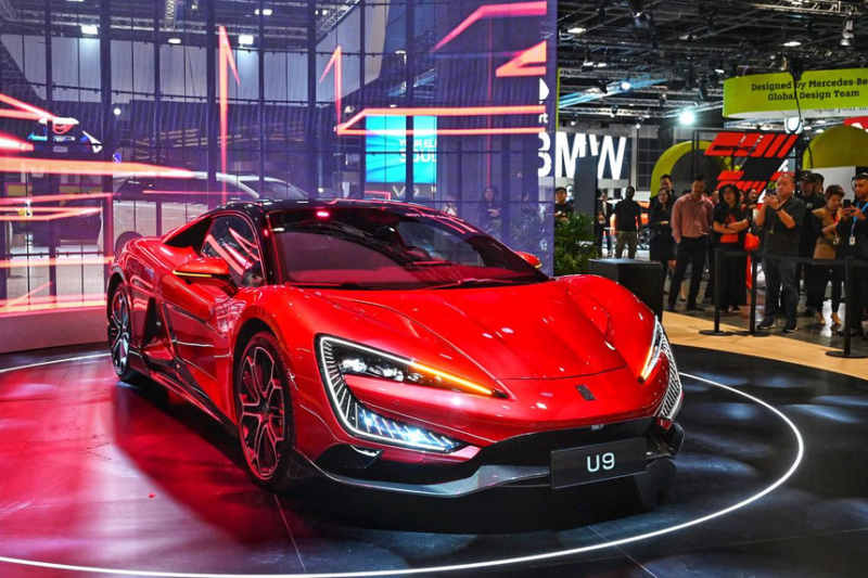 在剛剛結(jié)束的2025新加坡車展上,比亞迪還花了100多萬美元來搭建展臺,為的就是要在最豪華的展臺上,展示其豪華電動超跑仰望U9,而仰望U9的“絕招”就是原地?fù)u擺。