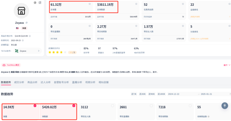 在營銷策略上,Zoyava充分發揮TikTok的流量優勢,通過達人帶貨、短視頻營銷等方式,迅速提升了品牌知名度和銷量。注重自營賬號運營的Zoyava,共開通了5個TikTok自營賬號,定期發布帶貨視頻和產品信息,吸引了對健康生活方式感興趣的用戶。同時,Zoyava還搭建了自己的獨立站,為用戶提供了更加便捷的購買渠道,用戶可以直接瀏覽和購買產品,無需跳轉至其他平臺。