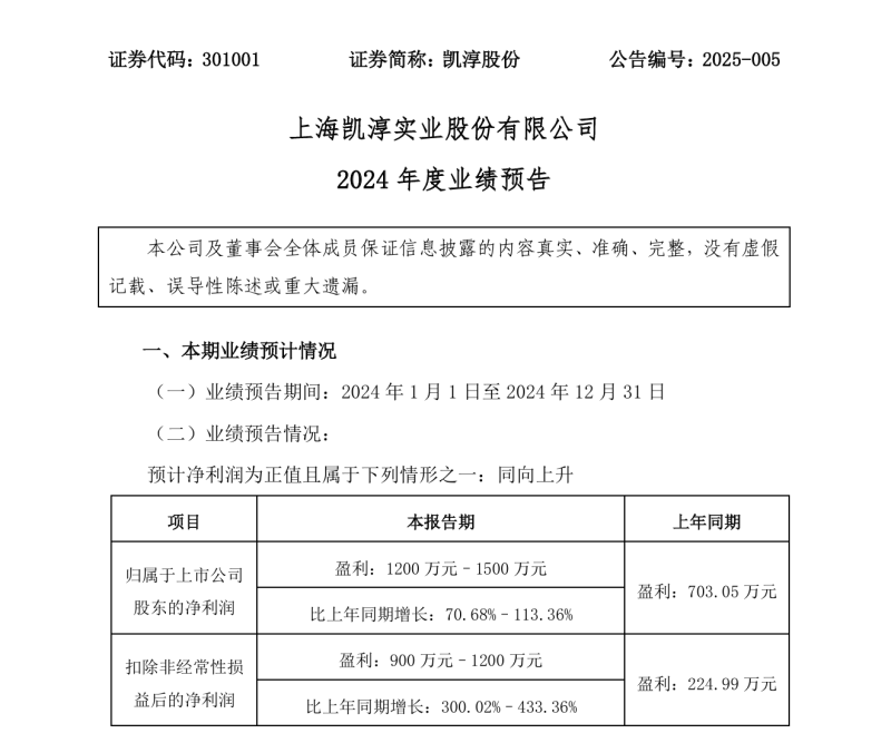 2月3日消息,上海凱淳實業股份有限公司近日發布2024年度業績預告。