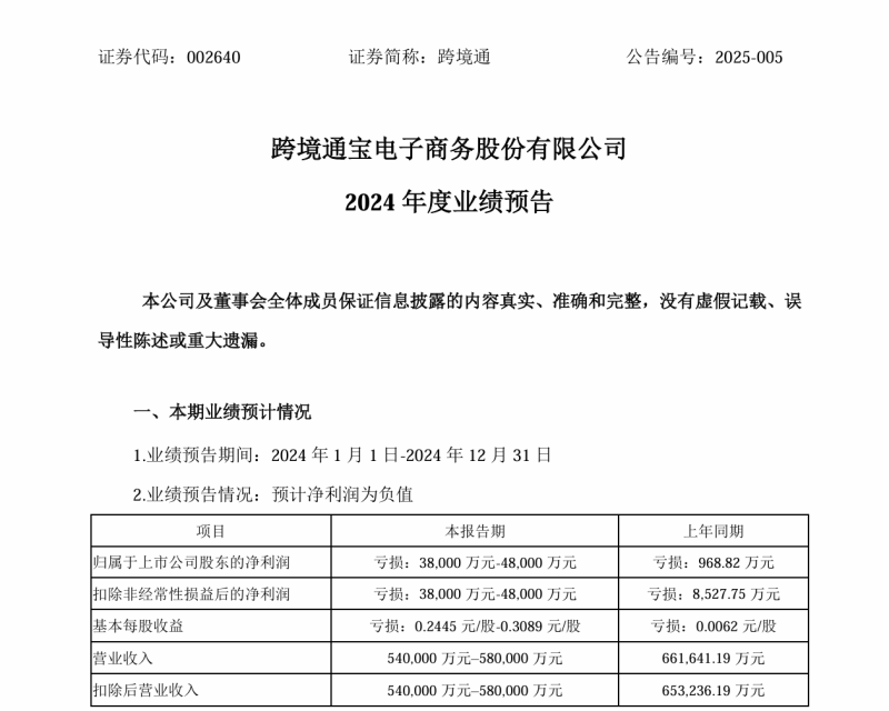 2月3日消息,跨境通寶電子商務(wù)股份有限公司發(fā)布2024年度業(yè)績預(yù)告。