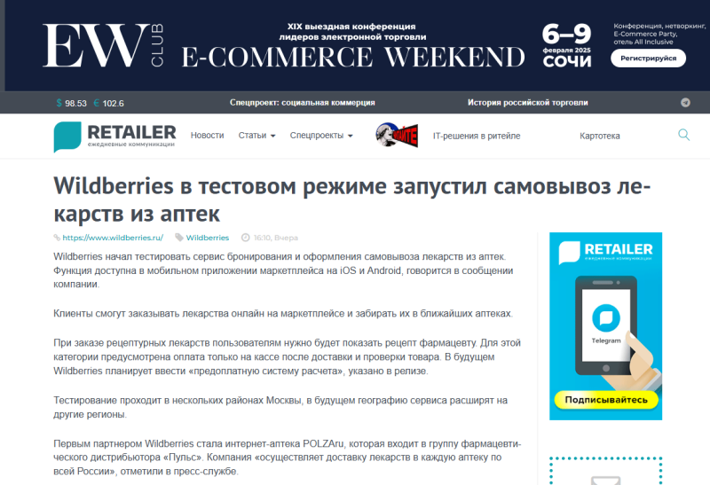 Wildberries測試藥店預(yù)訂和取藥服務(wù)