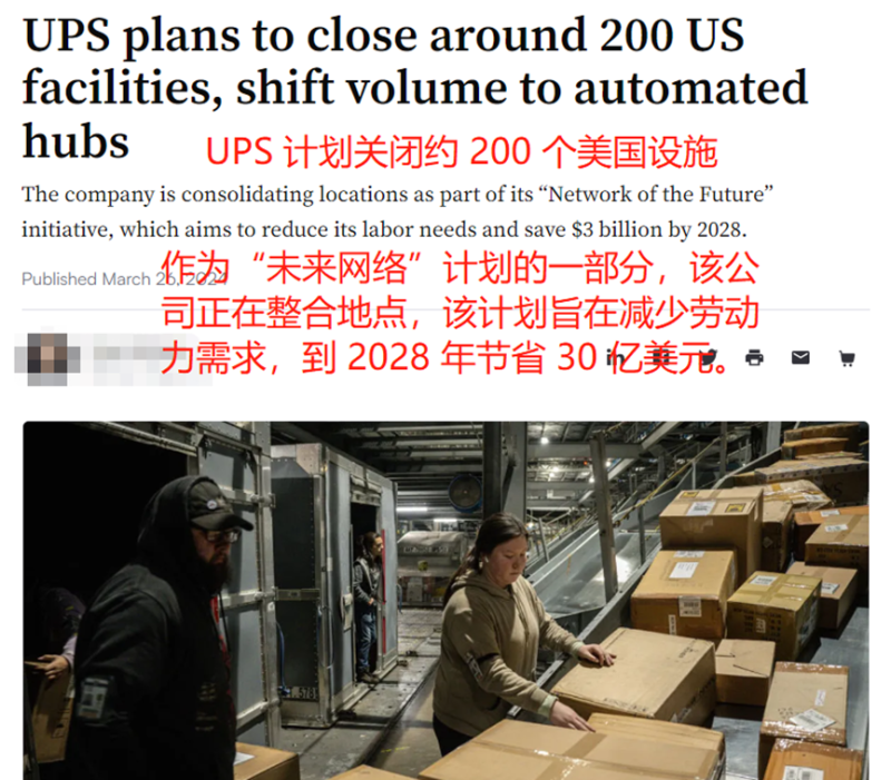 另一方面,UPS也在大力推進物流建設和自動化物流轉型。據了解,該巨頭正在改造舊有的物流中心,配備更多智能化的倉儲設備,以便提高物流配送效率。此外,根據UPS官方公布的消息,他們正在重新配置美國的物流網絡,并啟動一個名為“效率重塑”的計劃,重新設計端到端的流程。