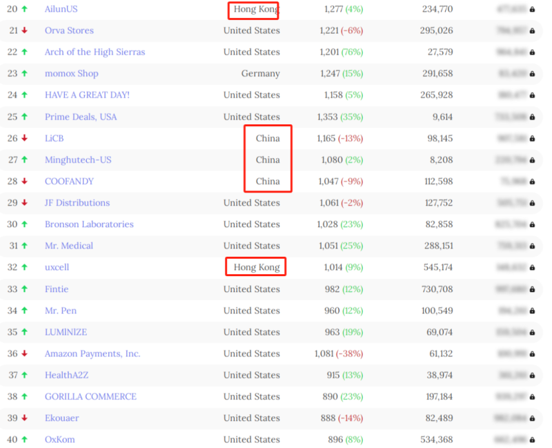 在這些中國賣家中,有幾位新上榜的面孔格外引人注目。其中,ThermoPro-US和Lucy Bamboo作為新上榜的賣家,他們的表現尤為突出。除了新上榜的賣家外,一些老牌賣家也展現出了強大的競爭力。