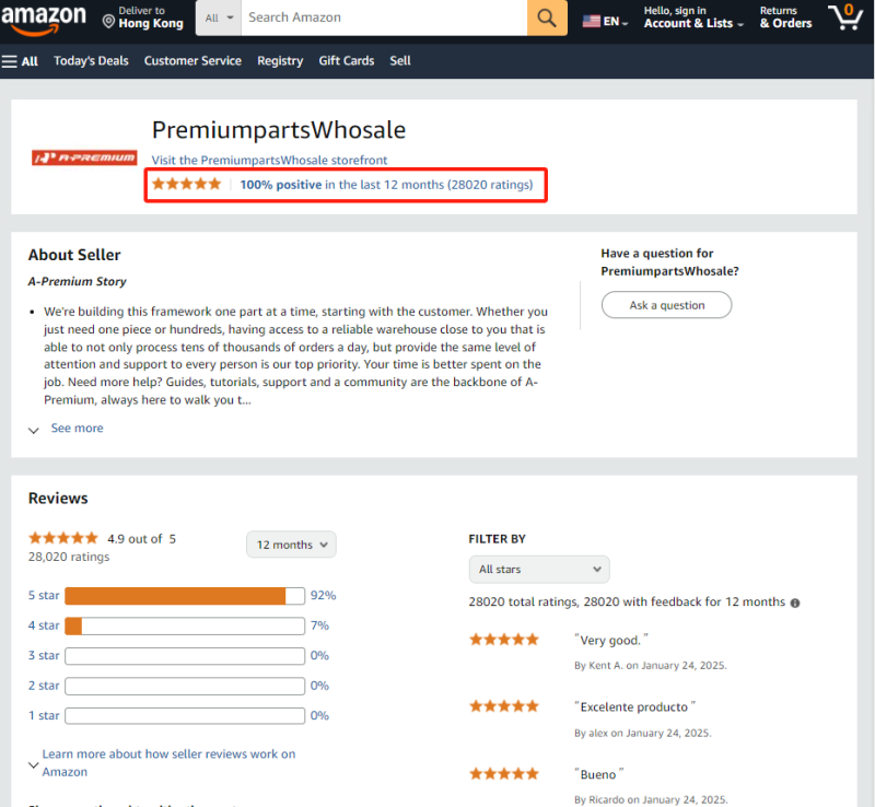 店鋪好評如潮 圖源:亞馬遜
