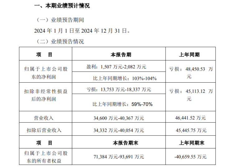 最近,有棵樹發(fā)布了2024年度業(yè)績(jī)預(yù)告。報(bào)告期內(nèi),該公司預(yù)計(jì)實(shí)現(xiàn)營(yíng)收3.46億元至4.04億元,低于上年同期的4.64億元;不過(guò)歸母凈利潤(rùn)達(dá)1507萬(wàn)元至2082萬(wàn)元,同比大漲103%至104%,成功實(shí)現(xiàn)扭虧為盈。