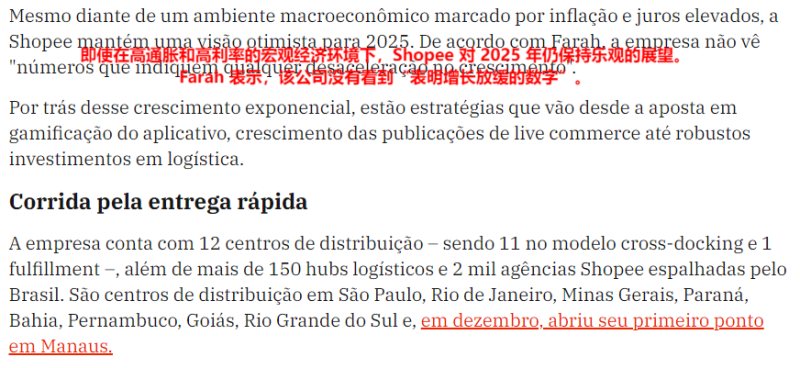 在用戶規模逐步穩定后,Shopee在巴西也有了新的發展方向,那便是加強物流建設,這是推動Shopee實現持續增長的重要支撐。