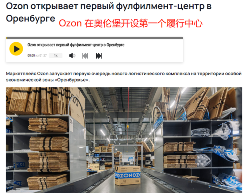 去年9月,Ozon還在莫斯科多莫杰多沃地區啟動了一個新物流綜合體的第一階段工程,并宣布將在啟動第二階段工程。這座新的物流綜合體會配備自動化設備,能大大加快Ozon的訂單交付流程。之后不久,Ozon斥資80億盧布在俄羅斯薩拉托夫新建的物流綜合體也正式投入運營了。