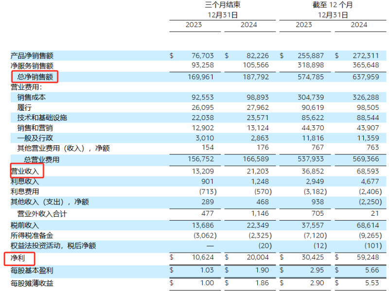 2024年全年財報數(shù)據(jù) 圖源:Amazon