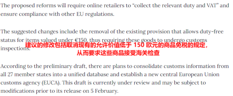 為此,歐盟委員會提出幾大改革重點。一是提議對電商進口商品征收手續(xù)費,以彌補海關(guān)的監(jiān)管成本;二是繼續(xù)敦促歐盟國家取消價值在150歐元以下包裹的進口免稅政策,此前,2023年,歐盟委員會就曾提出這一提議。